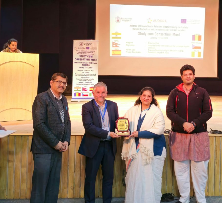 Banasthali Vidyapith, the world’s second-largest residential women’s University, hosted a consortium meeting and international conference of partners from six countries organized under the Erasmus Plus program Aurora from 11 to 13 January 2023. This program was carried out under the Erasmus Plus Project Aurora to promote capacity building in higher education and co-funded by the European Commission. Banasthali Vidyapith from India is playing the role of main coordinator of this project. Scholars from six countries Ireland, Romania, Spain, Czech Republic, Nepal and India participated in this program. The event commenced with a welcome address by Professor Anshuman Shastri, Director of International Relations and Director, Centre for Artificial Intelligence, Banasthali Vidyapith. Professor Shastri called upon the partners to continue to work together to promote higher education, even in the future.