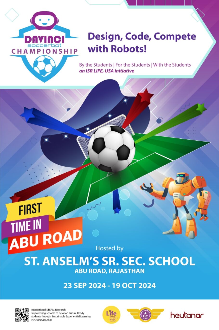 St Anselm School, Abu Road, is leaving no stone unturned to host the highly anticipated and prestigious DaVinci SoccerBot Championship 4th Edition, in September 2024, a groundbreaking event that showcases the innovative spirit and technological prowess of its students. This championship is a culmination of the STEAM Experiential Learning sessions conducted by International STEAM Research (ISR) at the school, where students are encouraged to apply their knowledge and find interdisciplinary connections across all their classroom subjects.